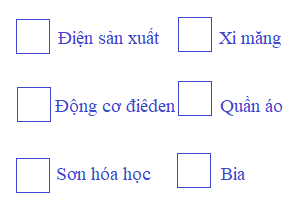 Một số sản phẩm tiêu biểu các ngành công nghiệp trọng điểm ở vùng Đông Nam Bộ có sử dụng nguồn tài nguyên tại chỗ là: