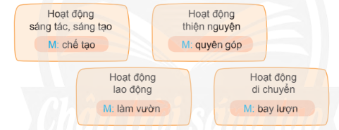 Bài tập 1: Tìm 2 - 3 động từ phù hợp với yêu cầu ghi trên mỗi thẻ dưới đây: