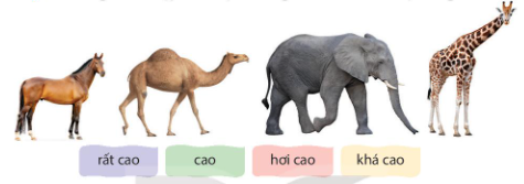 Câu 1: Tìm từ ngữ thích hợp để tả độ cao tăng dần của mỗi con vật trong tranh.