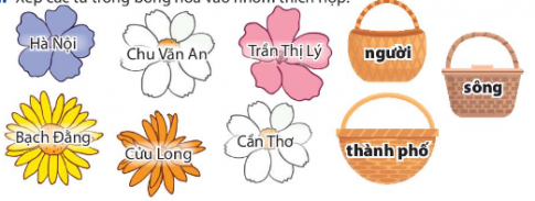 Câu 1: Xếp các từ trong bông hoa vào nhóm thích hợp.