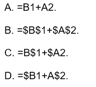 | 4) $C4 | d) Địa chỉ ô tính không thay đổi (cả tên cột và tên hàng luôn được giữ nguyên) | ||||||