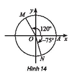 Bài tập 5 trang 12 toán lớp 11 tập 1 Chân trời: Viết công thức số đo tổng quát của các góc lượng giác (OA, OM) và (OA, ON) trong Hình 14