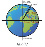 Bài tập 9 trang 13 toán lớp 11 tập 1 Chân trời: Hải li là một đơn vị chiều dài hàng hải, được tính bằng độ dài một cung chắn một góc $\alpha = \left ( \frac{1}{60}\right )^{o}$ của đường kinh tuyến (Hình 17). Đổi số đo $\alpha$ sang radian và cho biết 1 hải li bằng khoảng bao nhiêu kilômét, biết bán kính trung bình của Trái Đất là 6371km. Làm tròn kết quả đến hàng phần trăm.