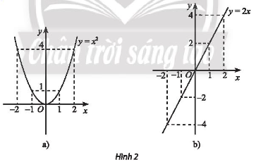 Khám phá 2 trang 26 toán lớp 11 tập 1 Chân trời: Xét hai hàm số $y = x^{2}$, $y=2x$ và đồ thị của chúng trong Hình 2. Đối với mỗi trường họp, nêu mối liên hệ của giá trị hàm số tại 1 và -1, 2 và -2. Nhận xét về tính đối xứng của mỗi đồ thị hàm số.
