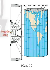 Vận dụng 2 trang 32 toán lớp 11 tập 1 Chân trời: Trong Địa lí, phép chiếu hình trụ được sử dụng để vẽ một bản đồ phẳng như trong Hình 10. Trên bản đồ phẳng lấy đường xích đạo làm trục hoành và kinh tuyến $0^{o}$ làm trục tung. Khi đó tung độ của một điểm có vĩ độ $\varphi ^{o} (-90<\varphi <90)$ được cho bởi hàm số $y = 20tan(\frac{\pi }{180}\varphi )$ (cm). Sử dụng đồ thị hàm số tang, hãy cho biết những điểm ở vĩ độ nào nằm cách xích đạo 20cm trên bản đồ.