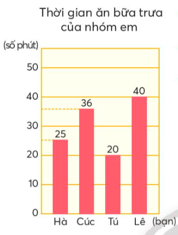 - Bạn Lê ăn lâu hơn bạn Tú bao nhiêu phút?