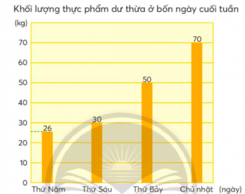 a) Từ thứ Năm đến Chủ nhật, lượng thực phẩm dư thừa tăng hay giảm?