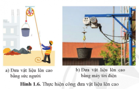 Câu hỏi 5: So sánh công của người và công của máy tời trong trường hợp ở hình 1.6. Người hay máy thực hiện công nhanh hơn?