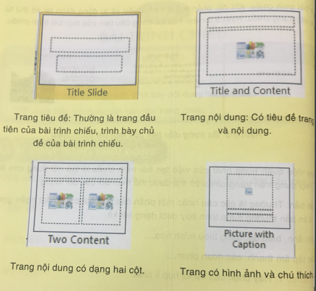 Bài tập số 3: Em có thể dùng các mẫu bố trí nào cho từng trang chiếu trong hình 3.5?