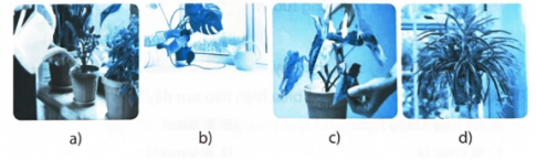 Bài tập 8. Nêu tên các công việc chăm sóc hoa, cây cảnh phù hợp với từng hình sau: