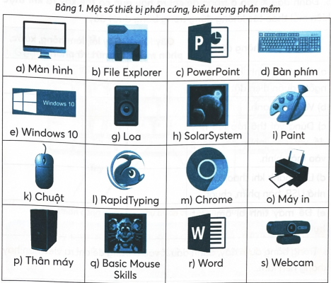 Bài tập 2: Hãy phân loại thiết bị cứng, biểu tượng phần mềm trong bảng 1