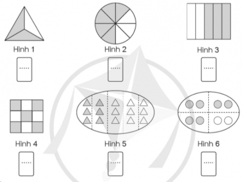 Quan sát hình vẽ, nêu phân số thích hợp: