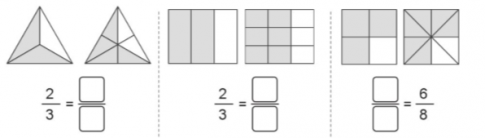 $\frac{3}{7}...\frac{4}{14}$; $\frac{12}{20}...\frac{4}{5}$.