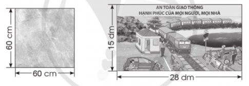Tính diện tích viên gạch, tranh cổ động và đường chạy có kích thước như hình dưới đây: