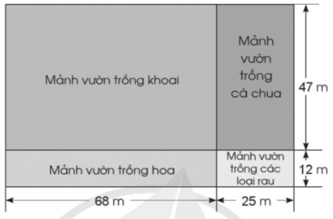 Tính diện tích từng mảnh vườn và diện tích cả khu vườn theo sơ đồ dưới đây: