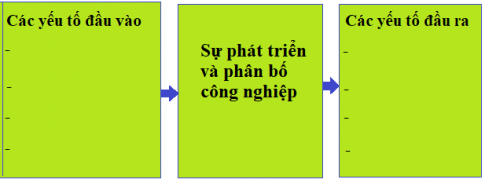 1. Hãy sắp xếp các nhân tố tự nhiên và kinh tế - xã hội ( được nêu trong bài ) tương ứng với các yếu tố đầu vào và đầu ra ảnh hưởng đến sự phát triển và phân bố công nghiệp?