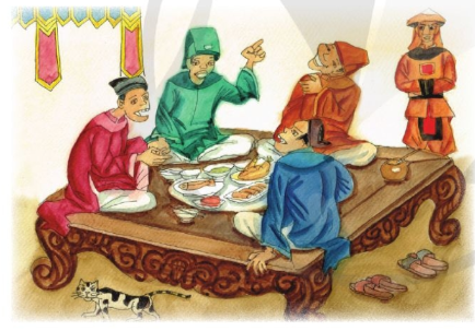 Câu 3. Tranh minh họa cho biết gì về bối cảnh cuộc thi nói khoác.